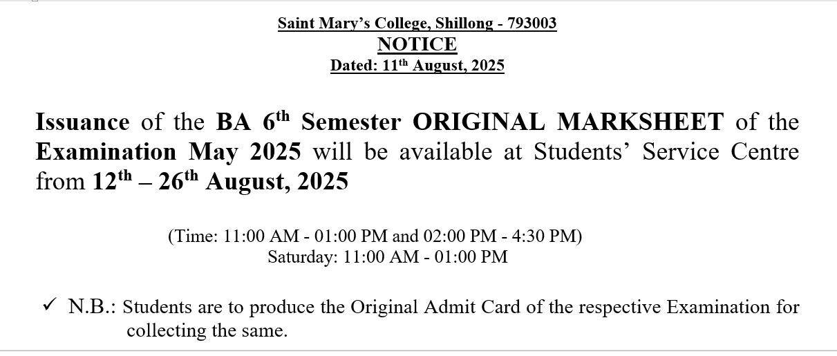 - Issuance of BA 6th Sem Marksheet - 19 Aug 2025