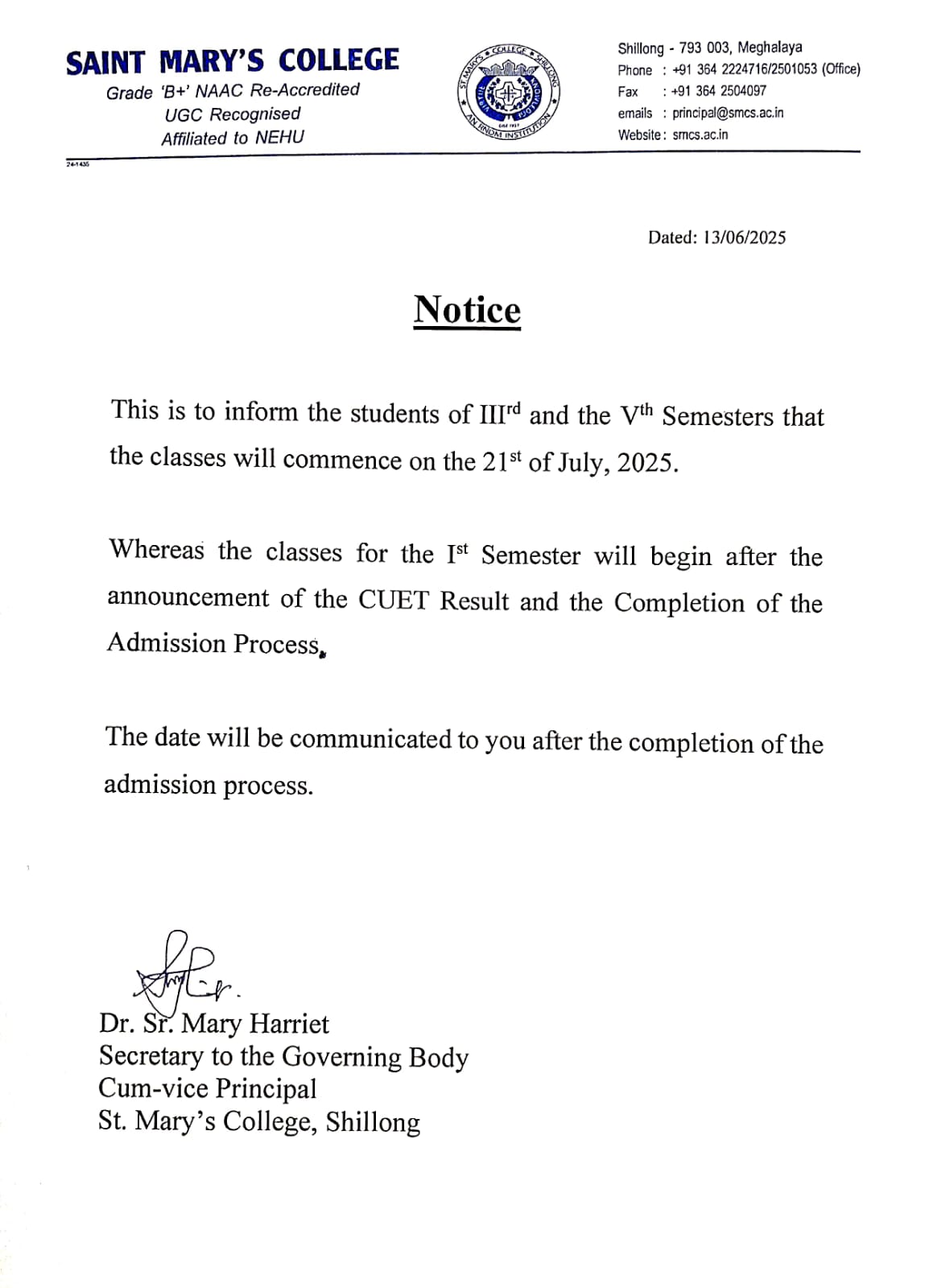 - St. Mary’s College, Shillong NEHU Final Year Result Merit List - 22 Jul 2025