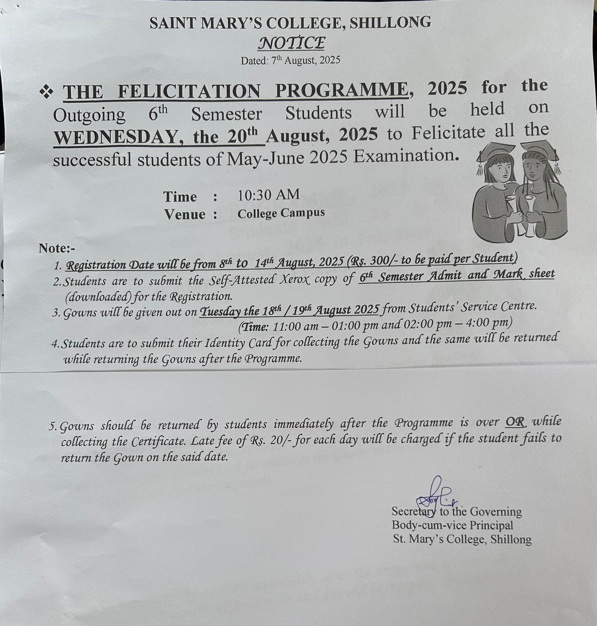 - The Felicitation Programme, 2025 for the Outgoing 6th Semester Students: Click Here - 08 Aug 2025